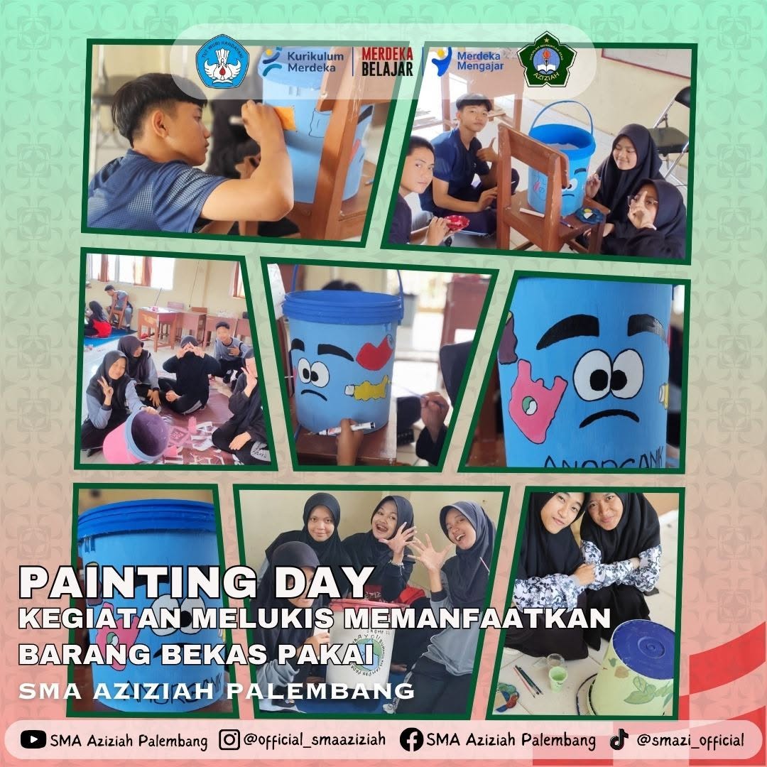 Siswa SMA Aziziah Palembang mengubah ember cat bekas menjadi tempat sampah yang cerah dan berguna untuk kelas-kelas kami. 🎨 Inisiatif ini mempromosikan kreativitas dan kesadaran lingkungan. 🌎 Sekarang, kami memiliki tempat sampah khusus untuk sampah organik dan anorganik, memudahkan proses daur ulang dan kompos!