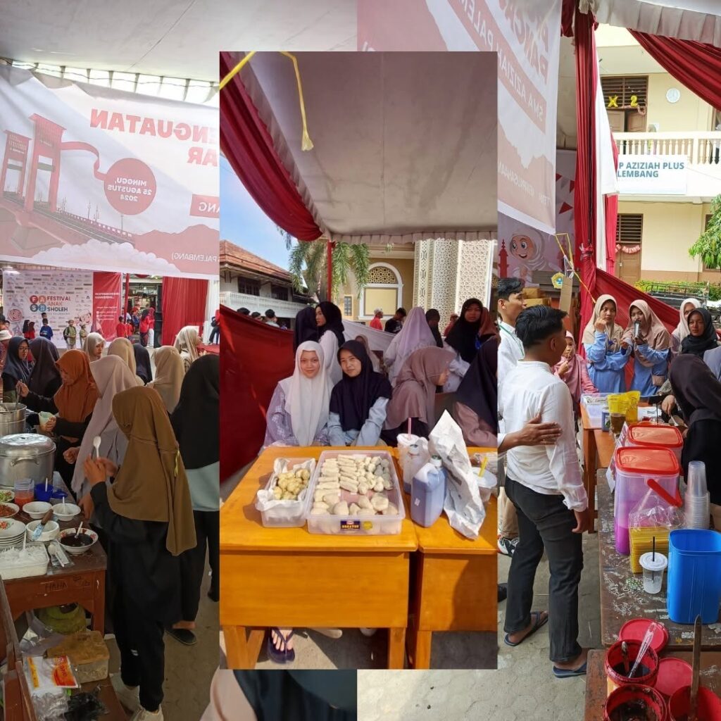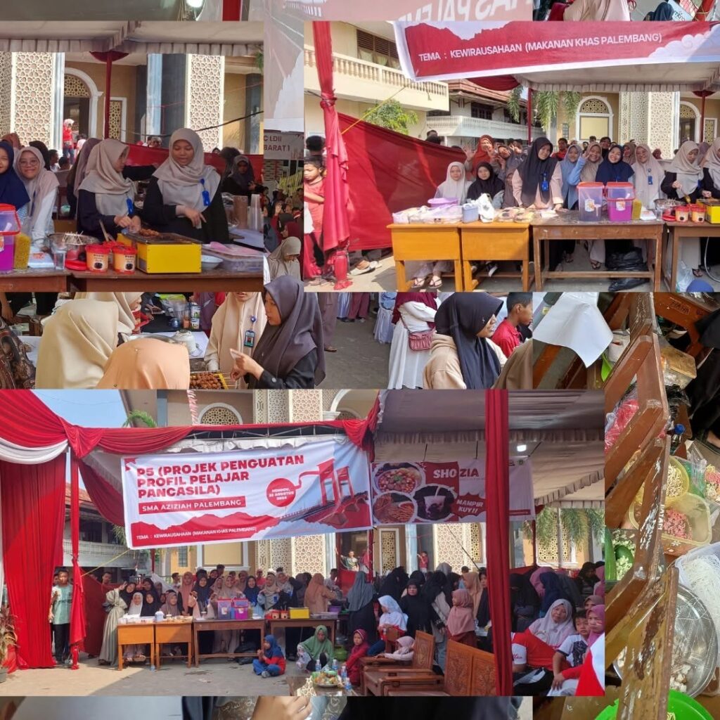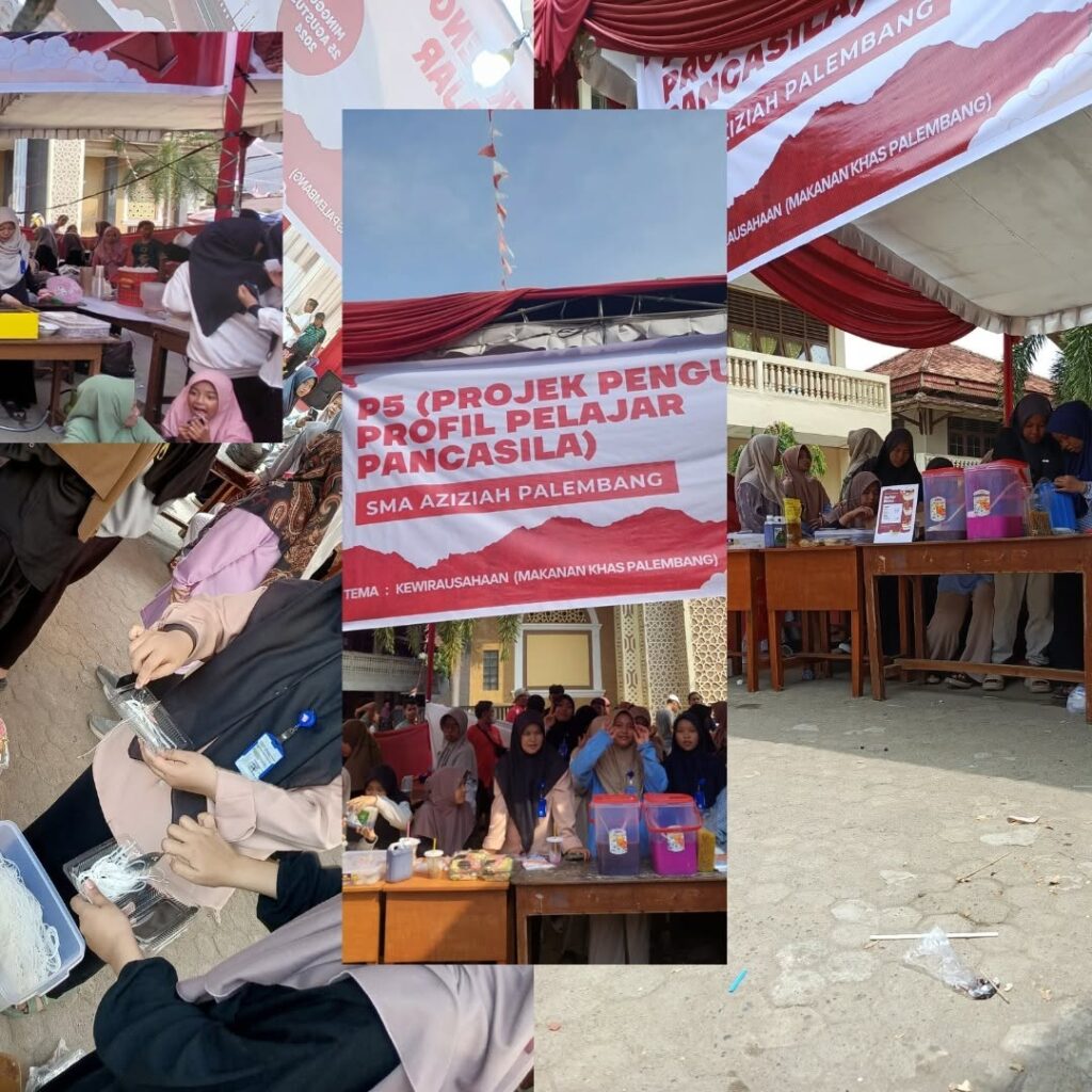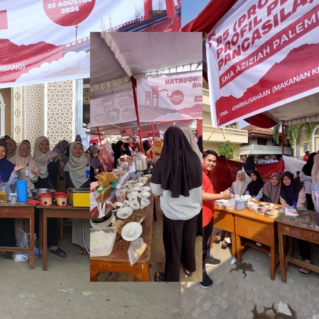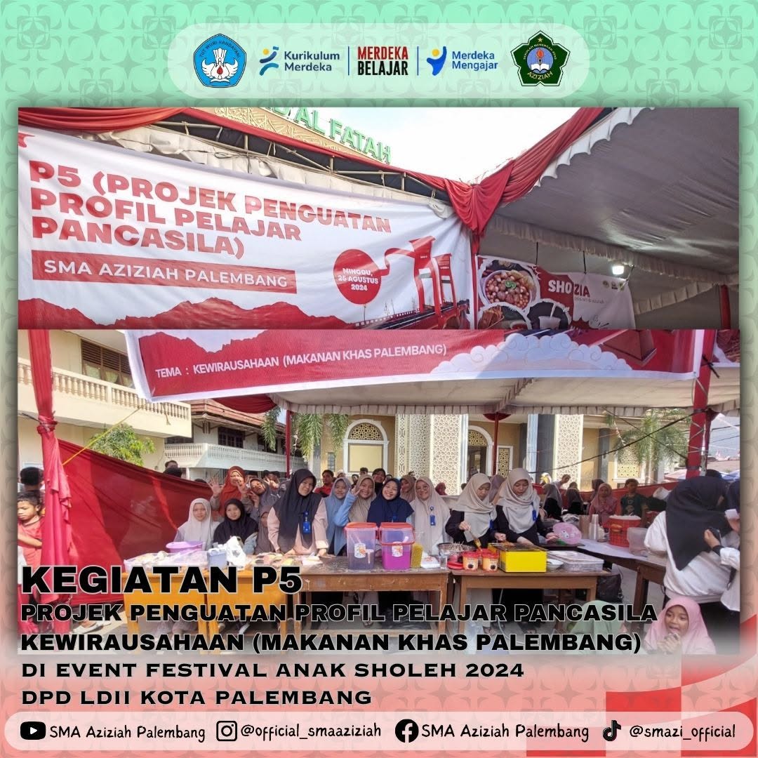 Palembang, 25 Agustus 2024, SMA Aziziah melaksanakan kegiatan P5 (Projek Penguatan Profil Pelajar Pancasila) dengan tema Kewirausahaan. Projek ini dilaksanakan pada event Festival Anak Sholeh (FAS) Tahun 2024 oleh DPD LDII Kota Palembang. Siswa SMA Aziziah Palembang berwirausaha makanan khas Palembang antara lain, pempek, tekwan, rujak mie, dll.